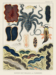 Barrier Reef Molluscs and Planarians from The Great Barrier Reef of Australia 1893 by William Saville-Kent 1845-1908. Fig 1: Flat worm Pseudoceros Kentii Fig 2: Planarian Pseudoceros Dimidiatus Fig 3: Blue spotted Octopus Octopus Pictus Fig 4: Sea-hare Aplysia Fig 5: Protheceroeus flavomaculatus Fig 6-7: Nudibranchiate Mollusc Doris Fig 8: Nudibranchiate Mollusc Gen Fig 9: Nudibranchiate Mollusc Ancula Fig 10: Furbelow clams Tridacna Compressa