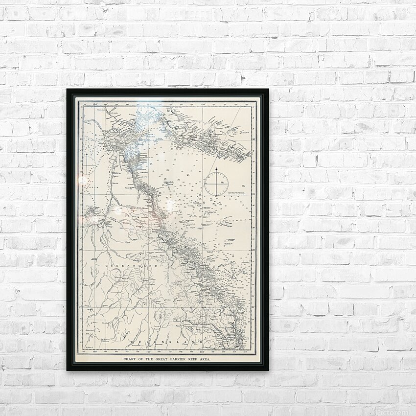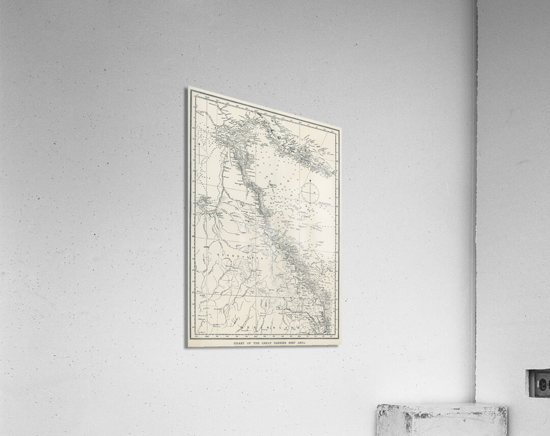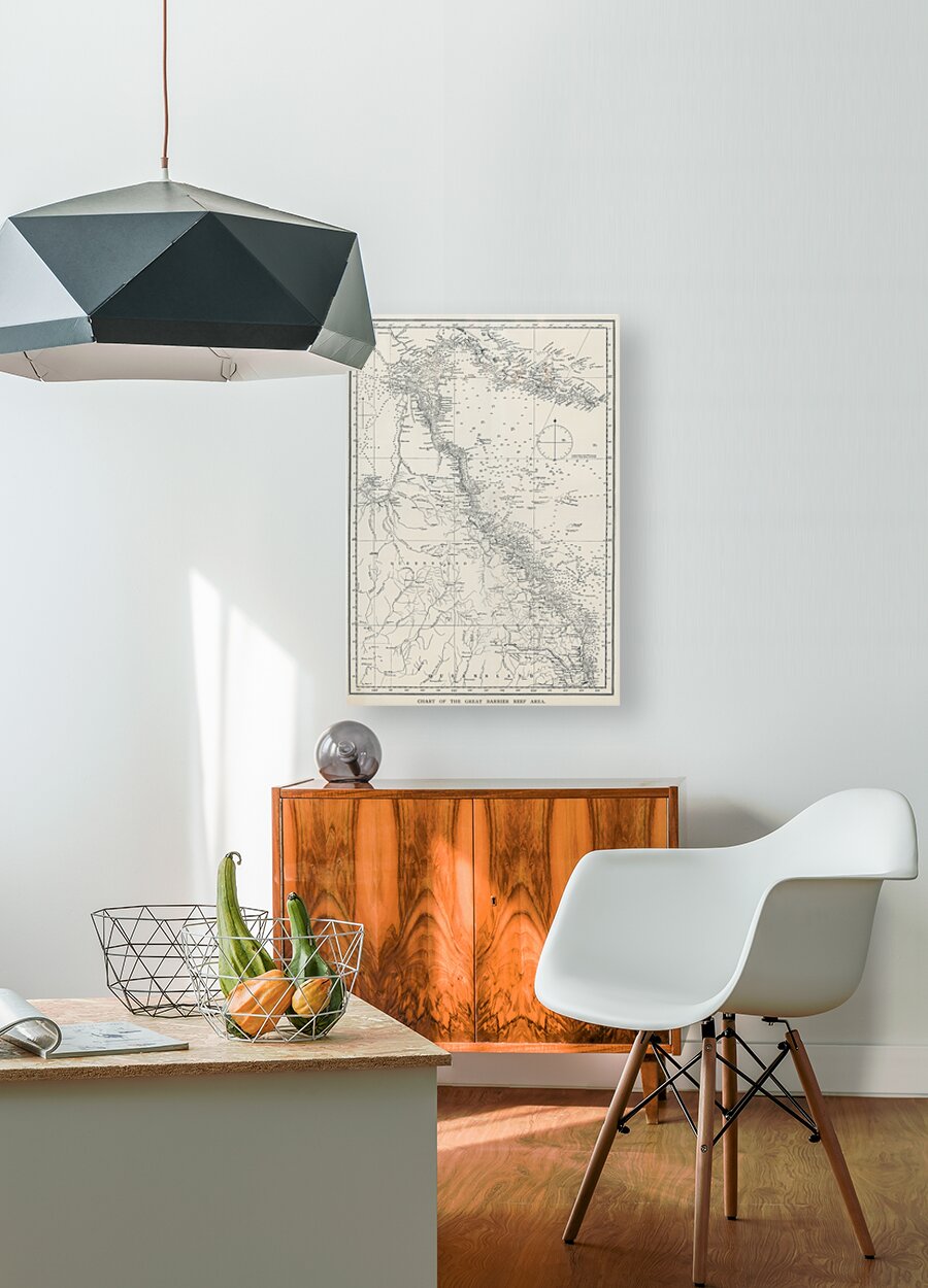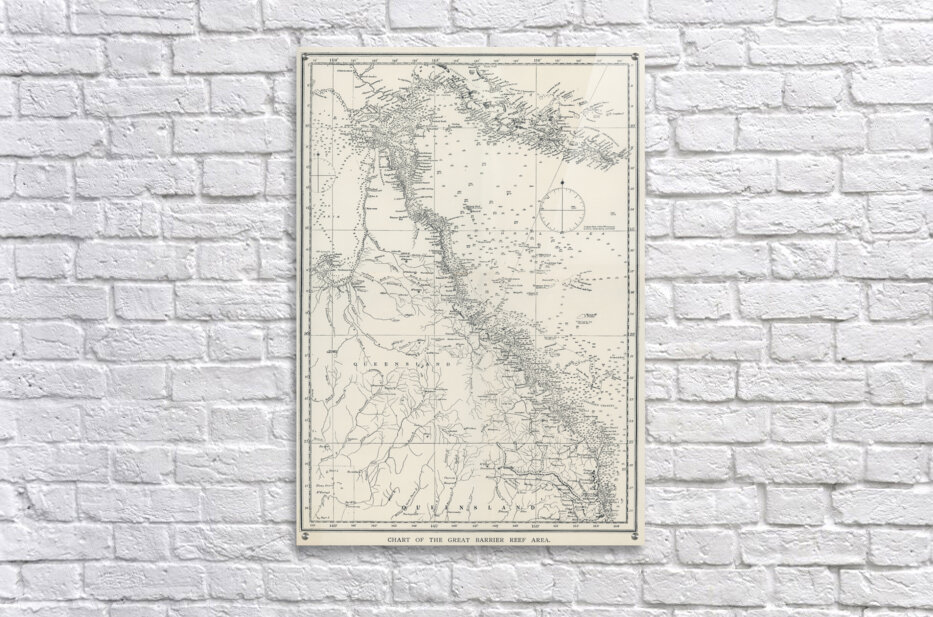 Chart of the Great Barrier Reef Area from The Great Barrier Reef of Australia 1893 by William Saville-Kent 1845-1908.  Frame print