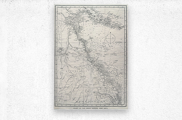 Chart of the Great Barrier Reef Area from The Great Barrier Reef of Australia 1893 by William Saville-Kent 1845-1908.  Picture Frame Printing
