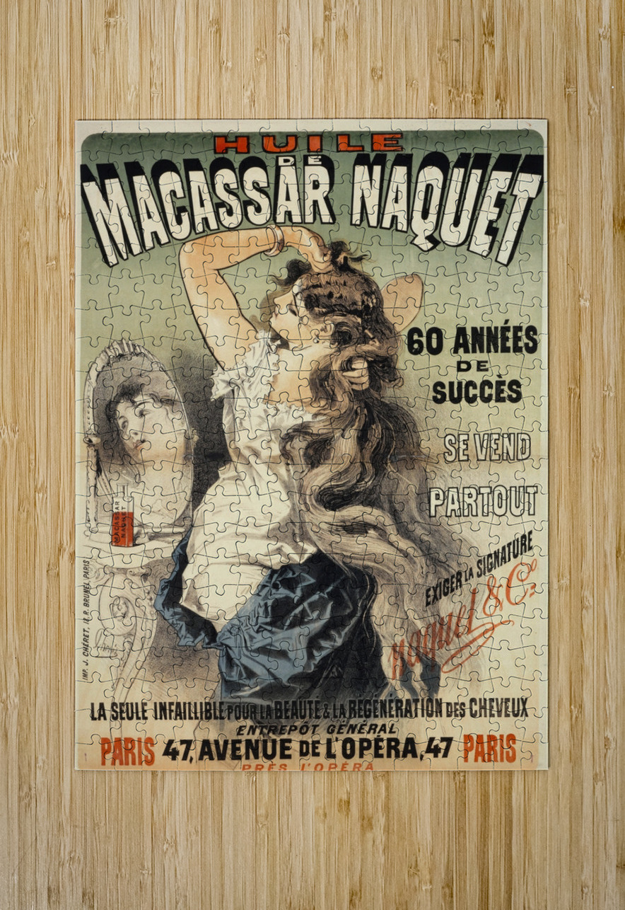 HUILE DE MACASSAR NAQUET 1877 POSTER BY JULES CHéRET