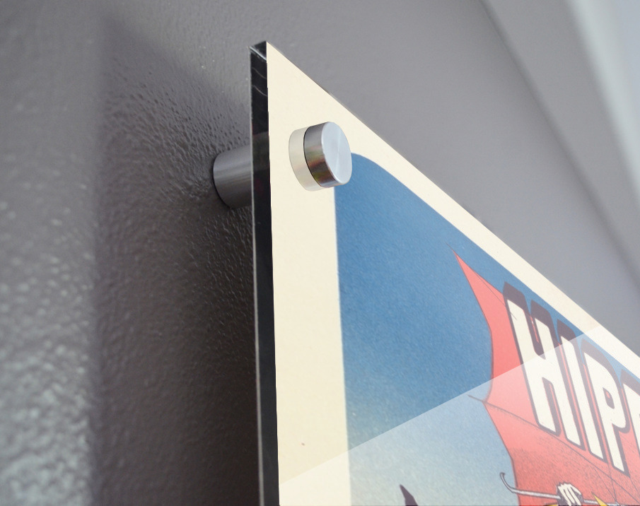 Printed to the edge - Ready to hang - provided with 4 premium polished aluminum stand off ( wall screws and mounting hardware provided ) We suggest a thicker 3/16" acrylic for any size over 42 inches to guarantee a straight acrylic, without curvature