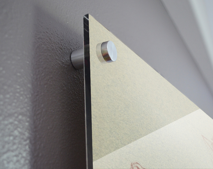 Printed to the edge - Ready to hang - provided with 4 premium polished aluminum stand off ( wall screws and mounting hardware provided ) We suggest a thicker 3/16" acrylic for any size over 42 inches to guarantee a straight acrylic, without curvature
