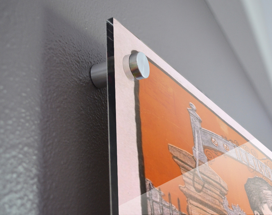 Printed to the edge - Ready to hang - provided with 4 premium polished aluminum stand off ( wall screws and mounting hardware provided ) We suggest a thicker 3/16" acrylic for any size over 42 inches to guarantee a straight acrylic, without curvature