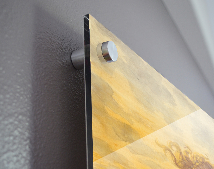 Printed to the edge - Ready to hang - provided with 4 premium polished aluminum stand off ( wall screws and mounting hardware provided )