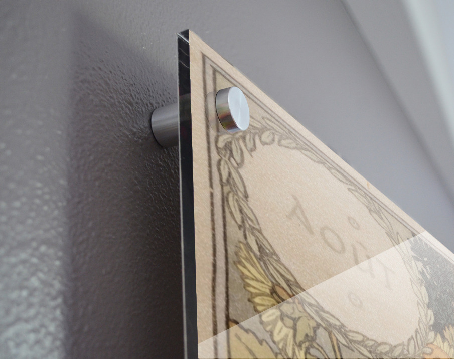 Printed to the edge - Ready to hang - provided with 4 premium polished aluminum stand off ( wall screws and mounting hardware provided )