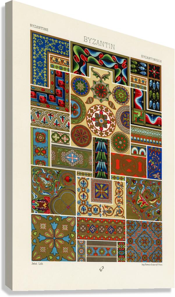 Byzantine pattern. 1888 edition Lornement Polychrome by Albert Racine 1825–1893. Canvas print