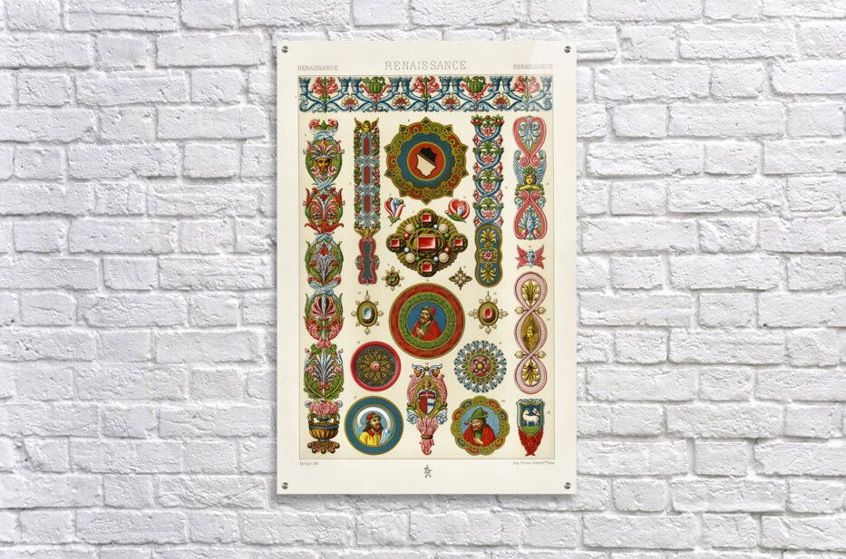 Get this artwork "Renaissance pattern. 1888 edition Lornement Polychrome by Albert Racine 1825–1893." in a framed print.