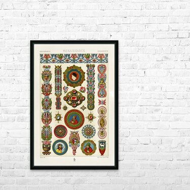 Renaissance pattern. 1888 edition Lornement Polychrome by Albert Racine 1825–1893. Frame print
