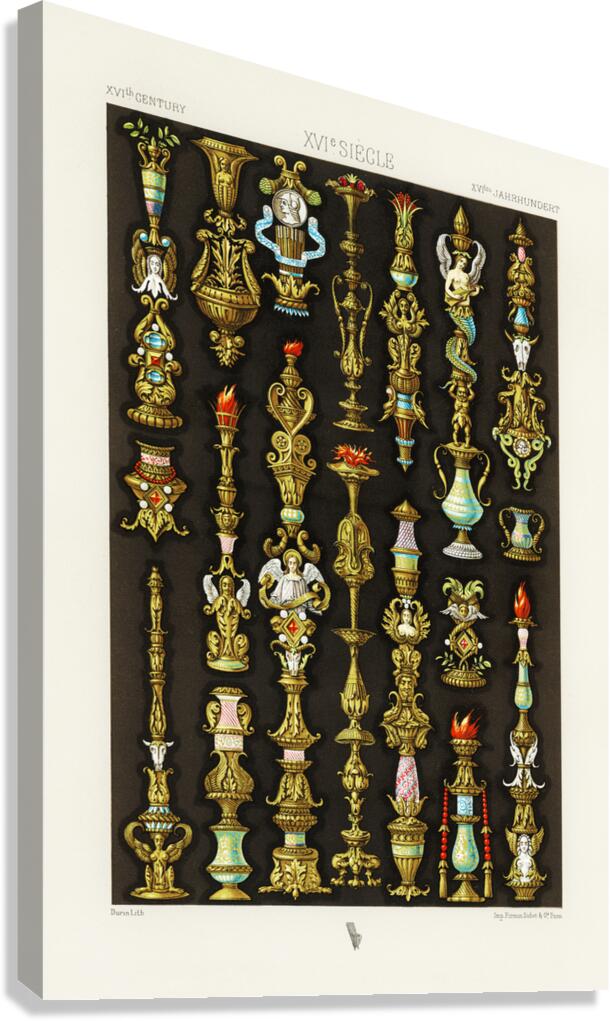 16th Century pattern. 1888 edition Lornement Polychrome by Albert Racine 1825–1893. Canvas print