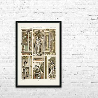 Renaissance pattern. 1888 edition Lornement Polychrome by Albert Racine 1825–1893. Frame print