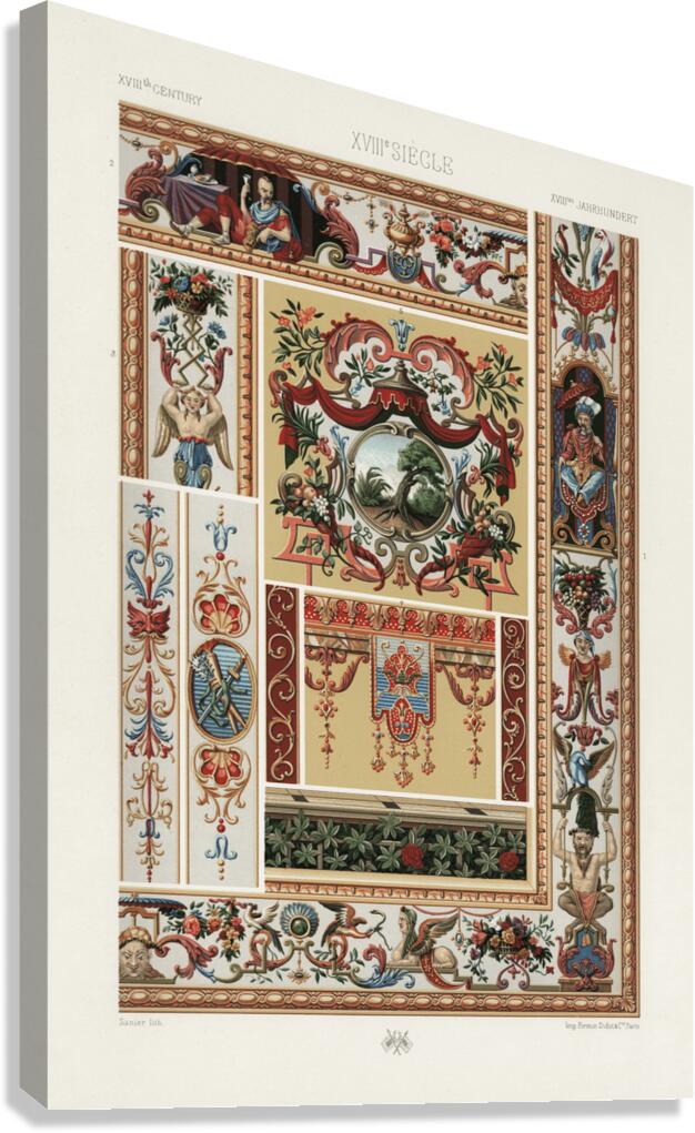 18th Century pattern. 1888 edition Lornement Polychrome by Albert Racine 1825–1893. Canvas print