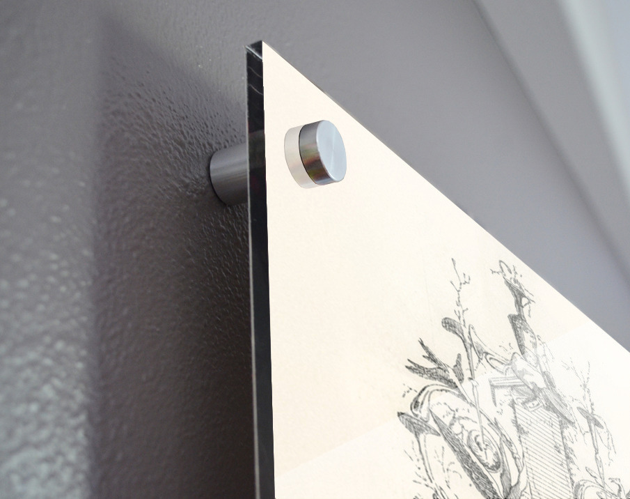 Printed to the edge - Ready to hang - provided with 4 premium polished aluminum stand off ( wall screws and mounting hardware provided ) We suggest a thicker 3/16" acrylic for any size over 42 inches to guarantee a straight acrylic, without curvature