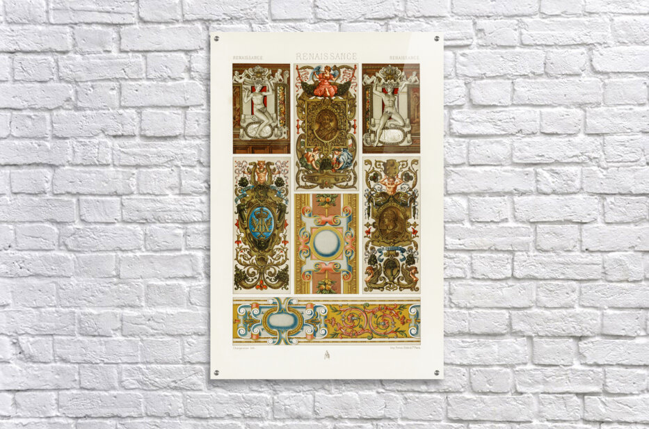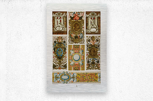 Get this artwork "Renaissance pattern. 1888 edition Lornement Polychrome by Albert Racine 1825–1893." in a framed print.