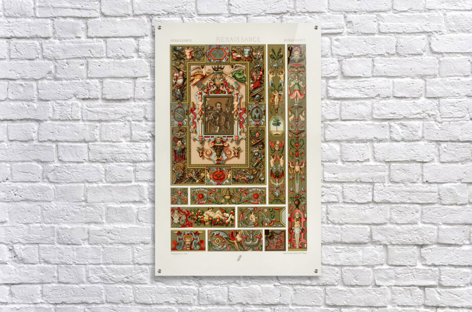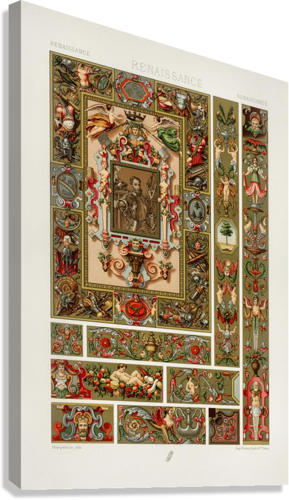 Get this artwork "Renaissance pattern. 1888 edition Lornement Polychrome by Albert Racine 1825–1893." in a framed print.