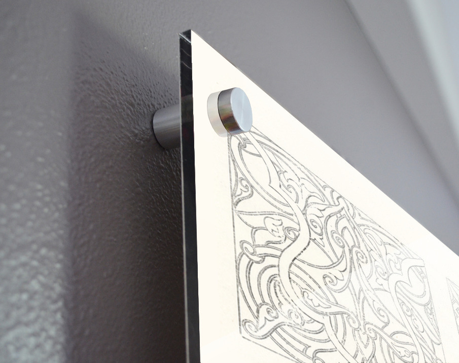 Printed to the edge - Ready to hang - provided with 4 premium polished aluminum stand off ( wall screws and mounting hardware provided ) We suggest a thicker 3/16" acrylic for any size over 42 inches to guarantee a straight acrylic, without curvature