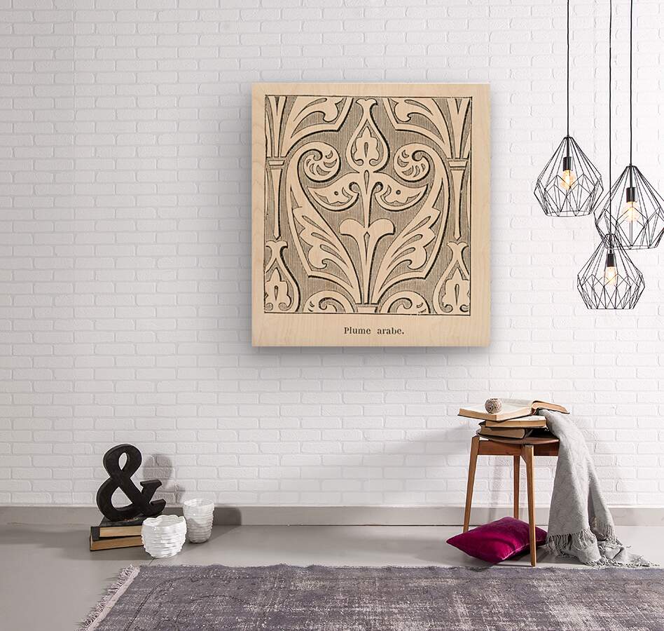Arabic feather design. 1888 edition Lornement Polychrome by Albert Racine 1825–1893.  Wood print