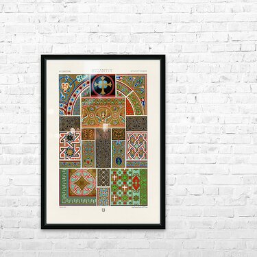 Byzantine pattern. 1888 edition Lornement Polychrome by Albert Racine 1825–1893. Frame print