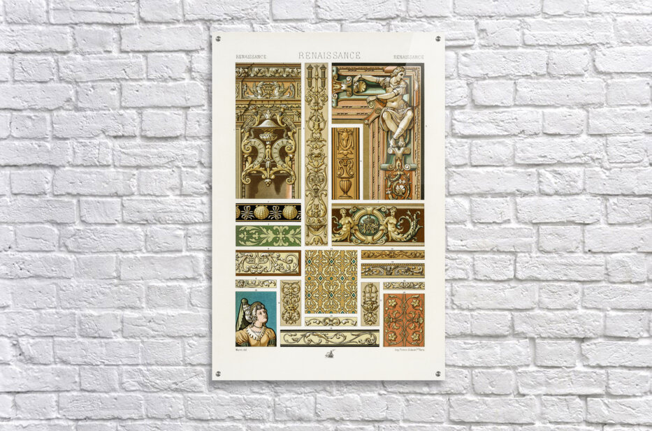 Get this artwork "Renaissance pattern. 1888 edition Lornement Polychrome by Albert Racine 1825–1893." in a framed print.
