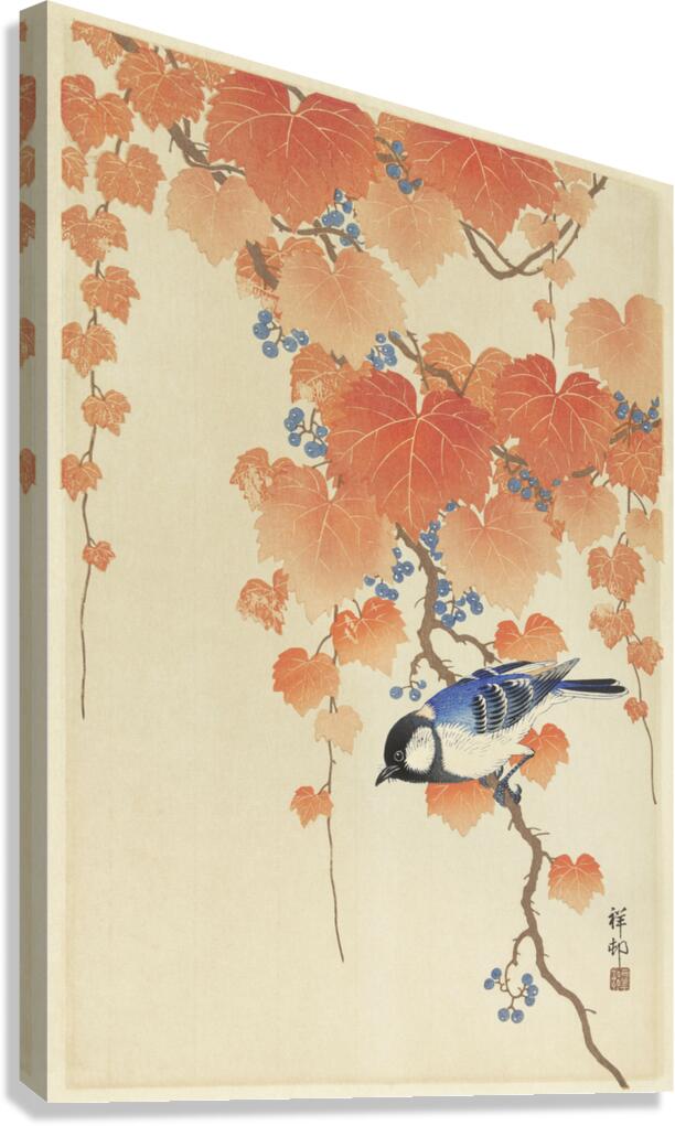 Great tit on paulownia branch 1925 - 1936 by Ohara Koson 1877-1945. Canvas print