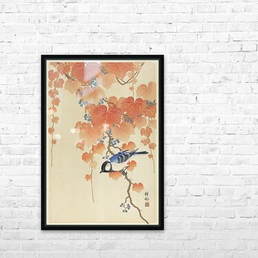 Great tit on paulownia branch 1925 - 1936 by Ohara Koson 1877-1945. Frame print