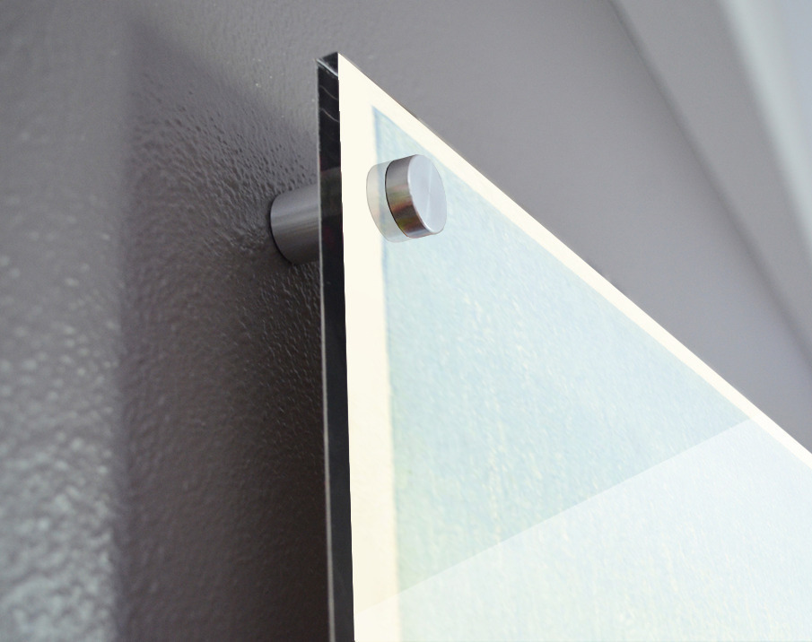 Printed to the edge - Ready to hang - provided with 4 premium polished aluminum stand off ( wall screws and mounting hardware provided ) We suggest a thicker 3/16" acrylic for any size over 42 inches to guarantee a straight acrylic, without curvature