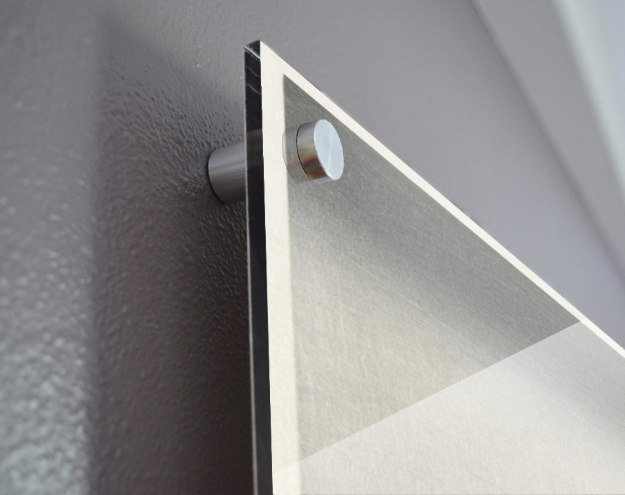 Printed to the edge - Ready to hang - provided with 4 premium polished aluminum stand off ( wall screws and mounting hardware provided ) We suggest a thicker 3/16" acrylic for any size over 42 inches to guarantee a straight acrylic, without curvature