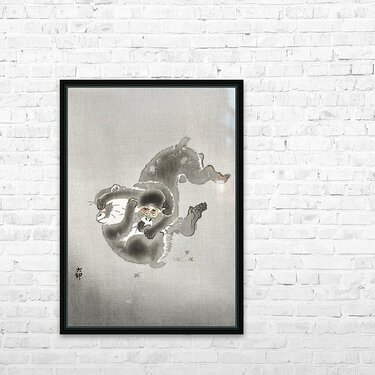 Two playing monkeys 1900 - 1930 by Ohara Koson 1877-1945. Picture Frame Printing