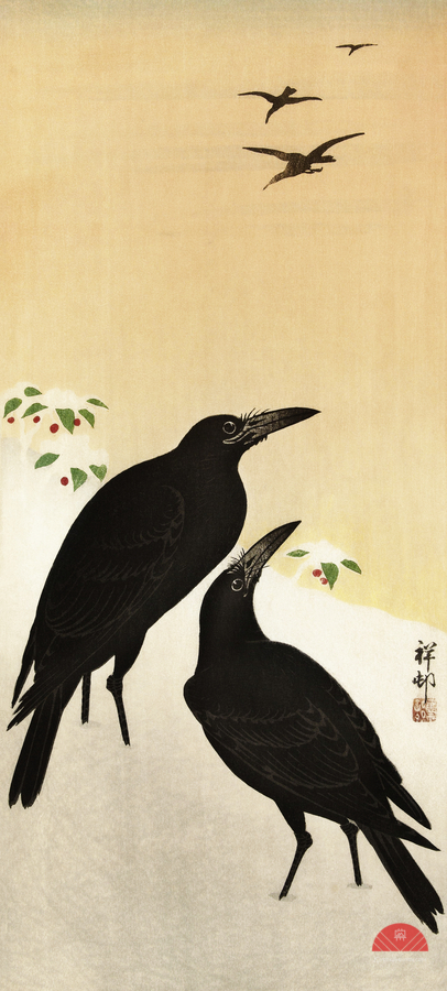 Crows in snow 1900 - 1936 by Ohara Koson 1877-1945. Wood print