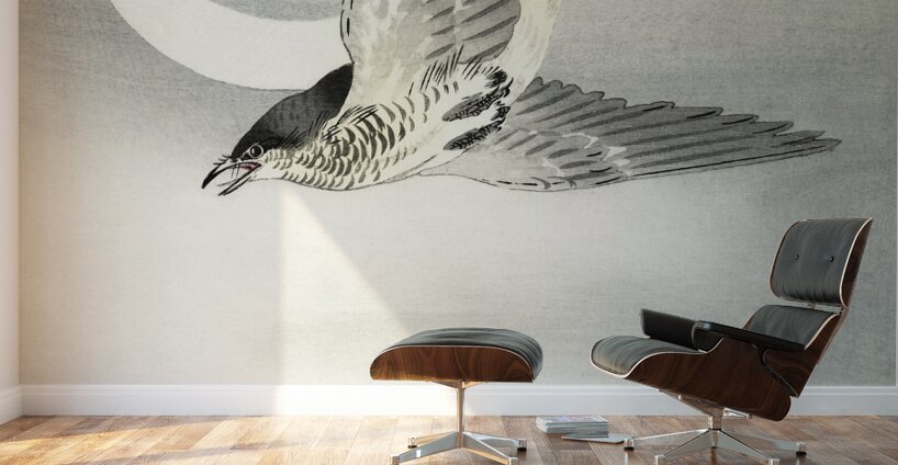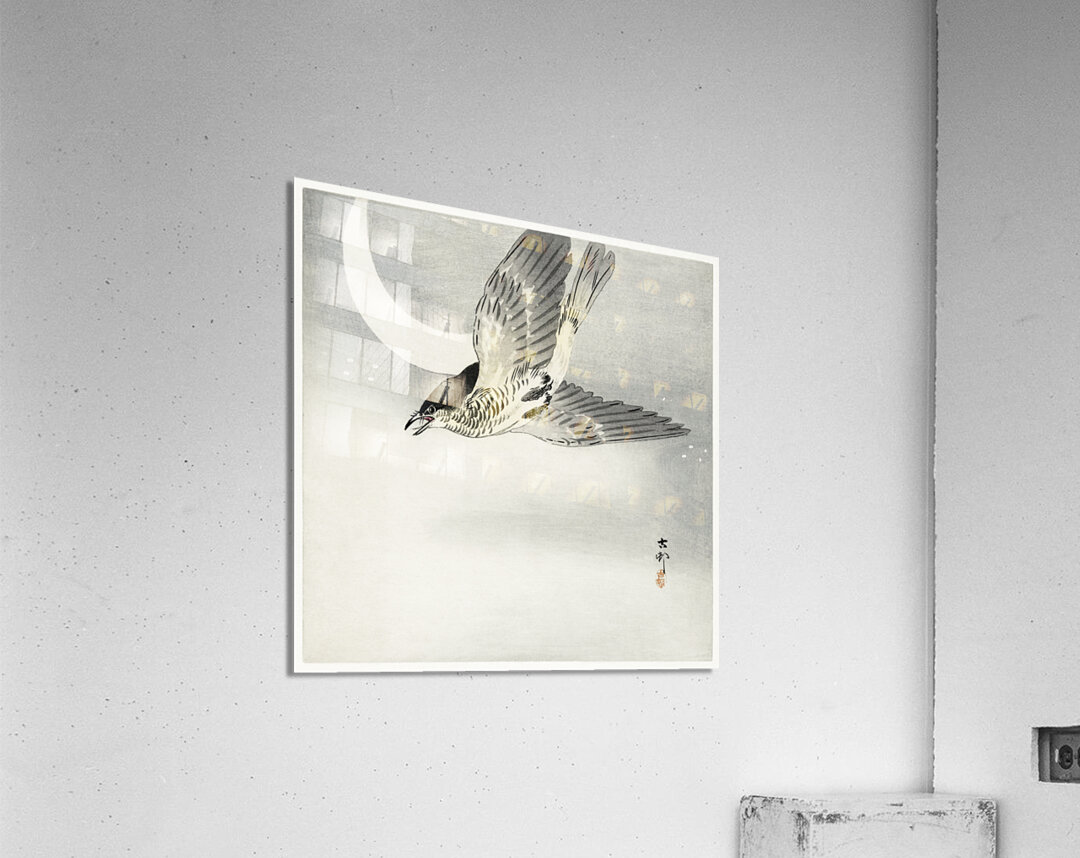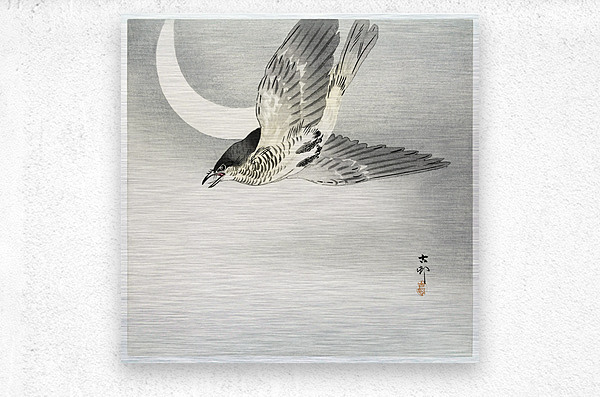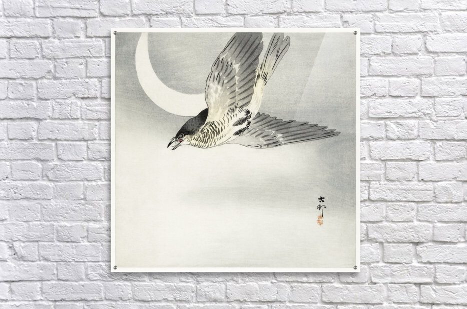Cuckoo at crescent moon 1900 - 1930 by Ohara Koson 1877-1945. Wood print