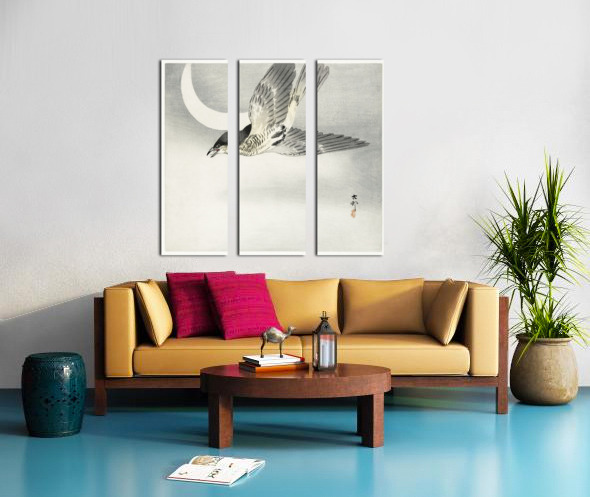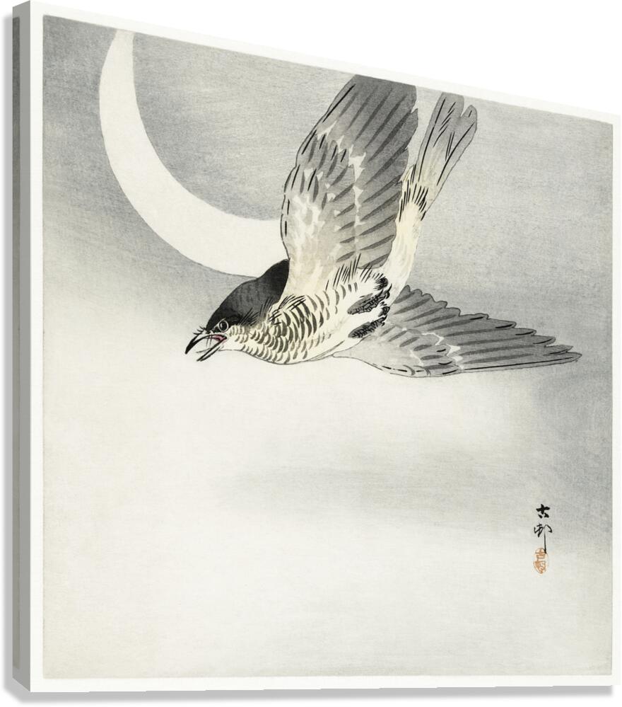 Cuckoo at crescent moon 1900 - 1930 by Ohara Koson 1877-1945. Canvas print