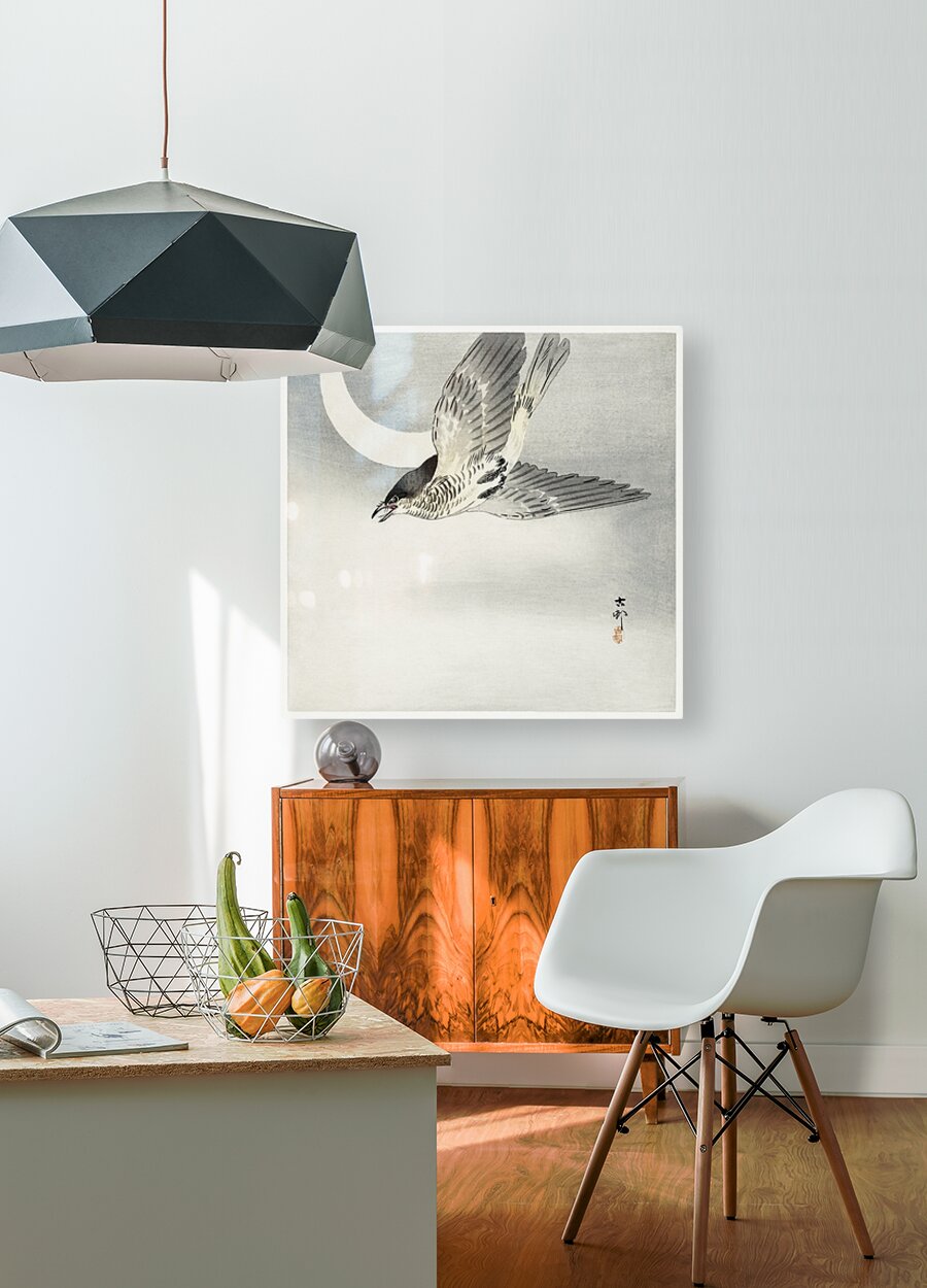 Cuckoo at crescent moon 1900 - 1930 by Ohara Koson 1877-1945. Frame print
