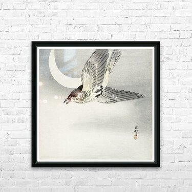 Cuckoo at crescent moon 1900 - 1930 by Ohara Koson 1877-1945. Picture Frame Printing