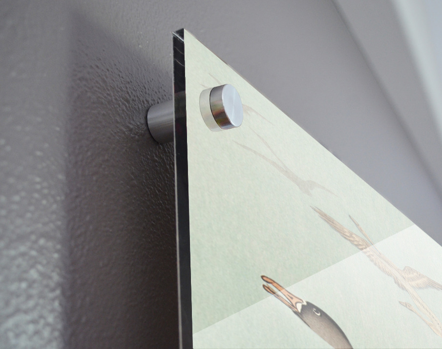 Printed to the edge - Ready to hang - provided with 4 premium polished aluminum stand off ( wall screws and mounting hardware provided ) We suggest a thicker 3/16" acrylic for any size over 42 inches to guarantee a straight acrylic, without curvature