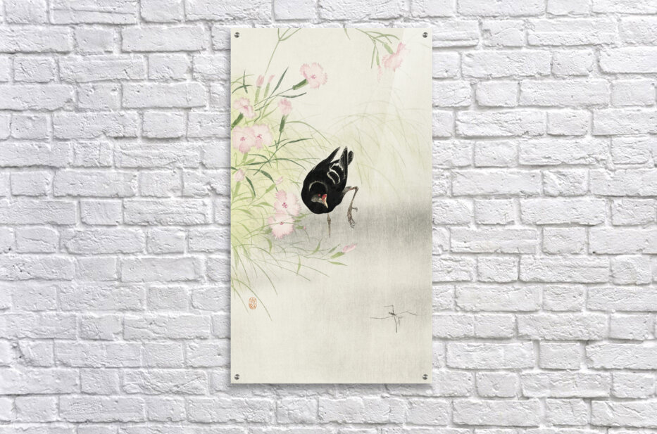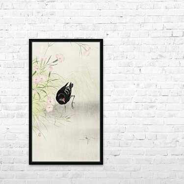 Moorhen at flowering plant 1900 - 1936 by Ohara Koson 1877-1945. Picture Frame Printing
