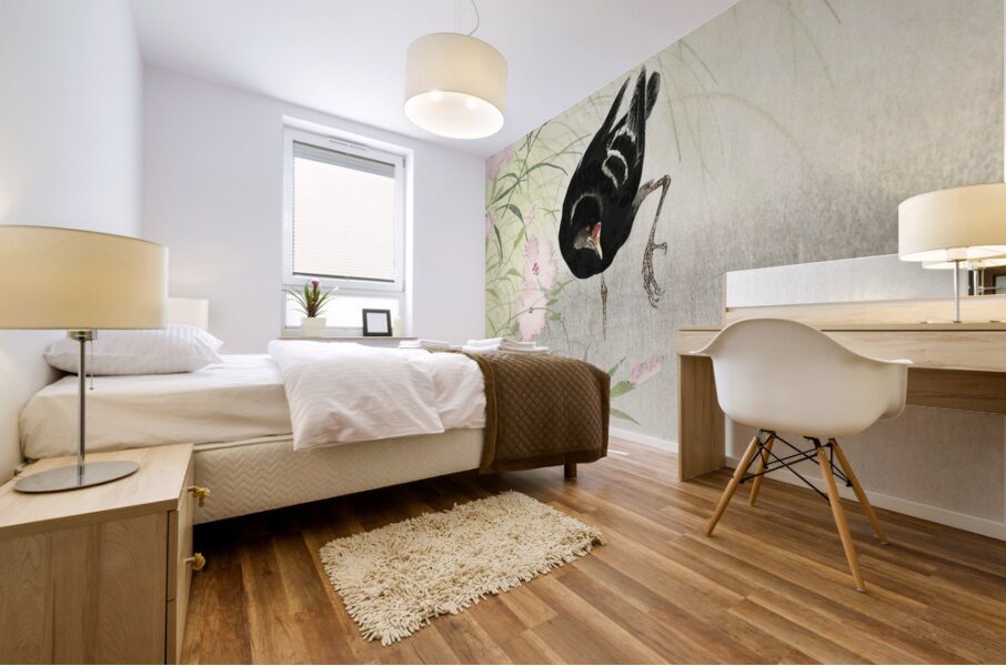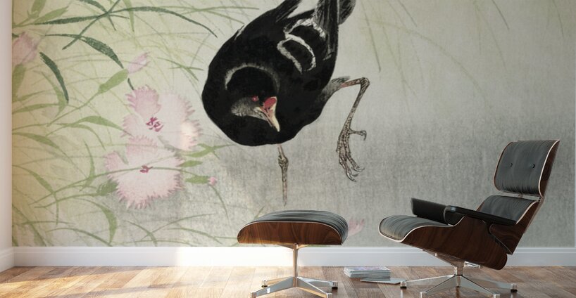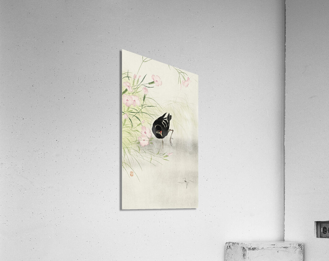 Moorhen at flowering plant 1900 - 1936 by Ohara Koson 1877-1945. Wood print
