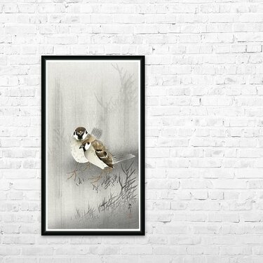 Two ring sparrows in the rain 1900 - 1930 by Ohara Koson 1877-1945. Picture Frame Printing