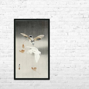 Get this artwork "Two pigeons with falling ginkgo leaves 1900 - 1930 by Ohara Koson 1877-1945." in a framed print.
