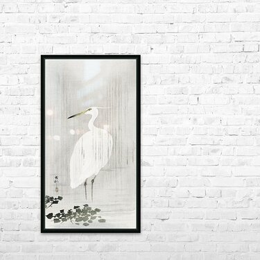 Egret in rain 1900 - 1930 by Ohara Koson 1877-1945. Picture Frame Printing
