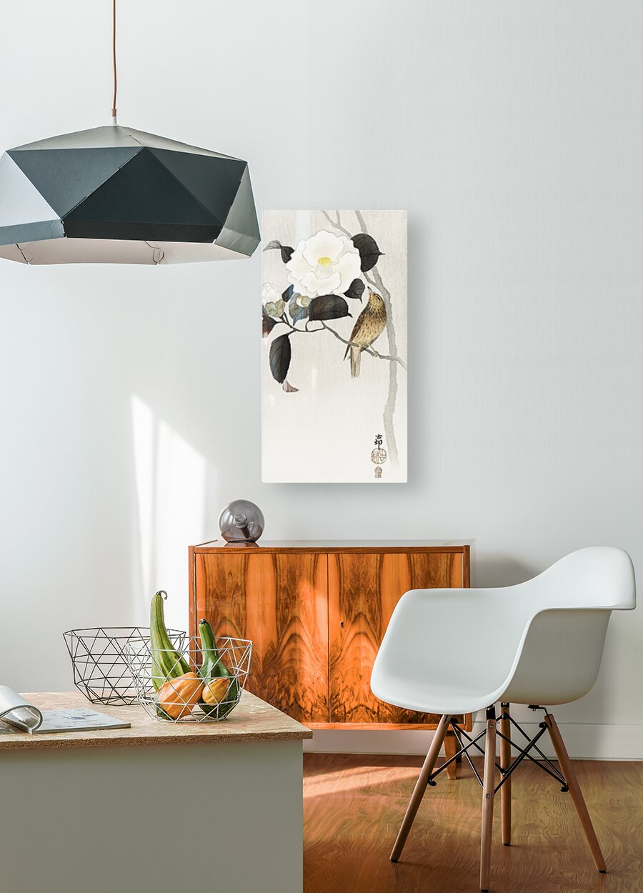 Lapwing on tree stump 1900 - 1930 by Ohara Koson 1877-1945. Wood print