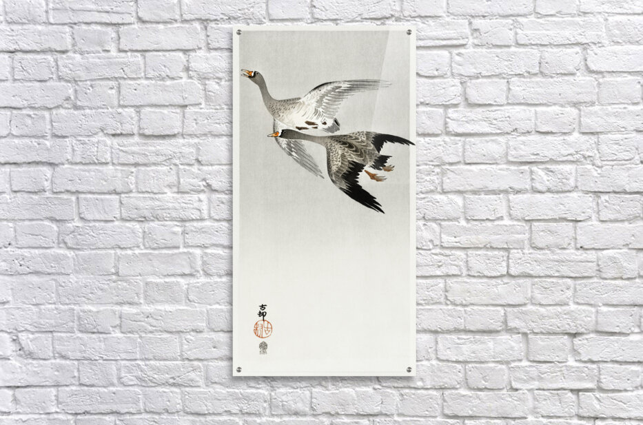 Get this artwork "Great geese flying in the snow 1900 - 1910 by Ohara Koson 1877-1945." in a framed print.