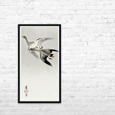 Great geese flying in the snow 1900 - 1910 by Ohara Koson 1877-1945. Picture Frame Printing