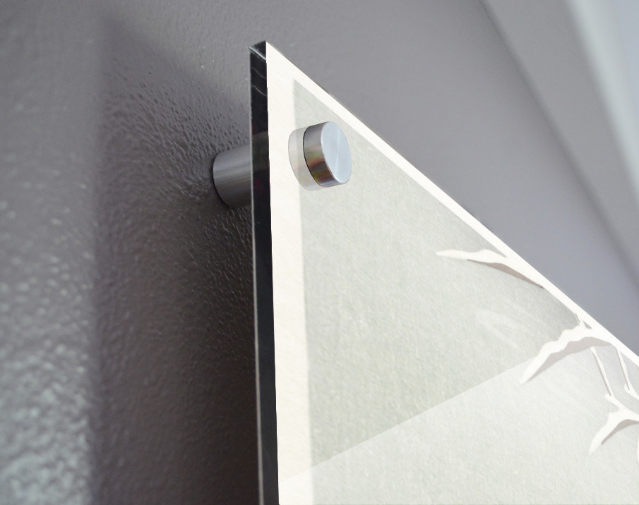 Printed to the edge - Ready to hang - provided with 4 premium polished aluminum stand off ( wall screws and mounting hardware provided ) We suggest a thicker 3/16" acrylic for any size over 42 inches to guarantee a straight acrylic, without curvature