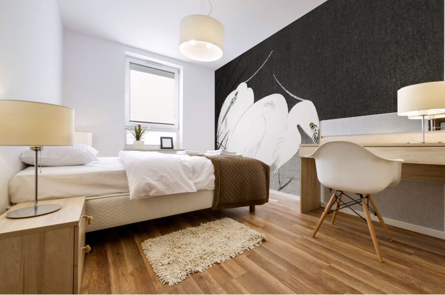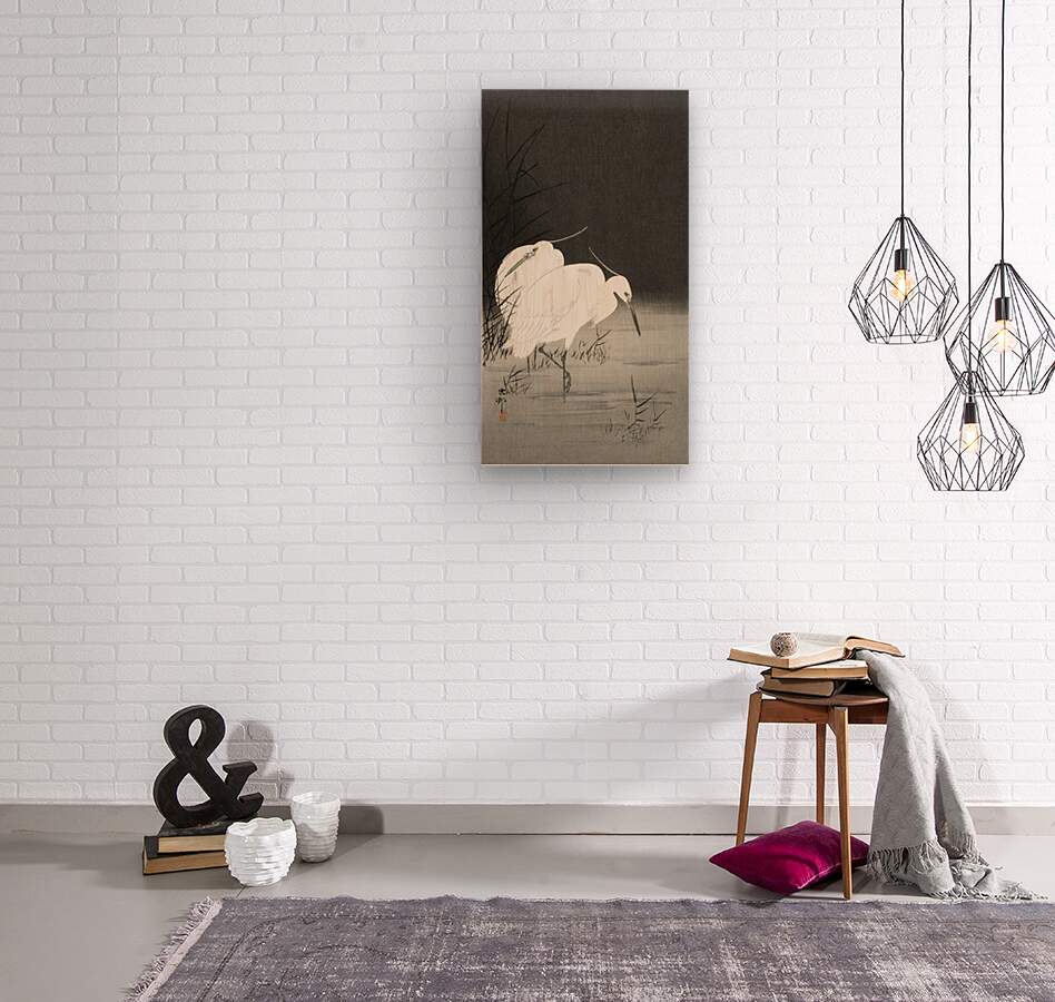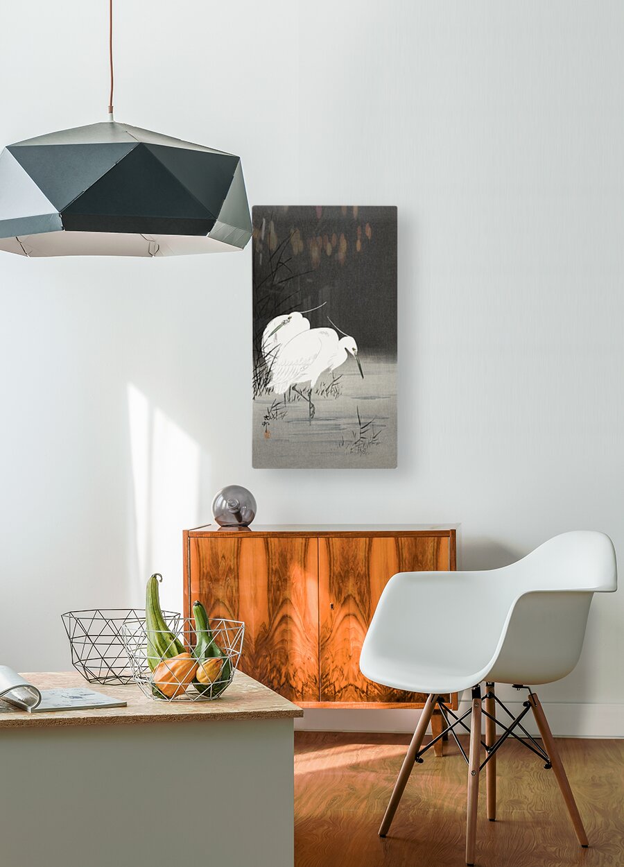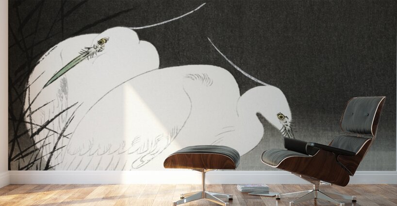 Two egrets in the reeds 1900 - 1930 by Ohara Koson 1877-1945. Wood print