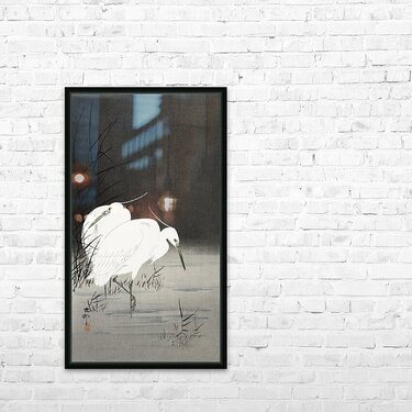 Two egrets in the reeds 1900 - 1930 by Ohara Koson 1877-1945. Picture Frame Printing