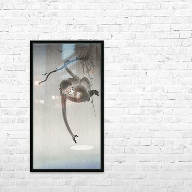 Monkey and reflection of the moon 1900 - 1936 by Ohara Koson 1877-1945. Picture Frame Printing