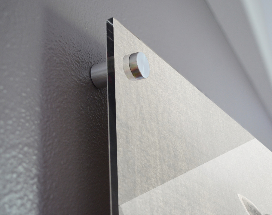 Printed to the edge - Ready to hang - provided with 4 premium polished aluminum stand off ( wall screws and mounting hardware provided ) We suggest a thicker 3/16" acrylic for any size over 42 inches to guarantee a straight acrylic, without curvature