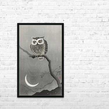 Get this artwork "Long-eared owl on bare tree branch 1900 - 1930 by Ohara Koson 1877-1945." in a framed print.