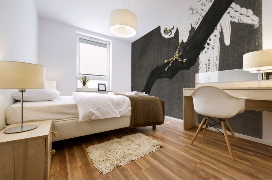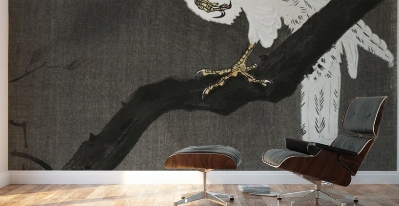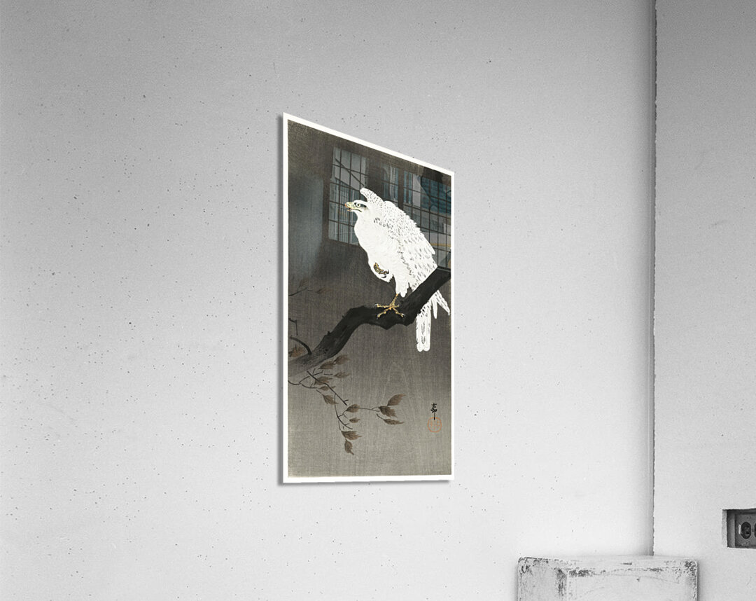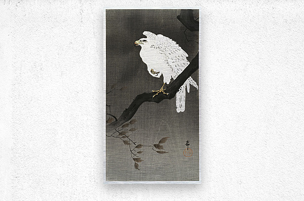 Snowy eagle on a tree branch 1910 - 1930 by Ohara Koson 1877-1945. Wood print