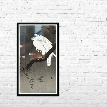 Snowy eagle on a tree branch 1910 - 1930 by Ohara Koson 1877-1945. Picture Frame Printing