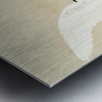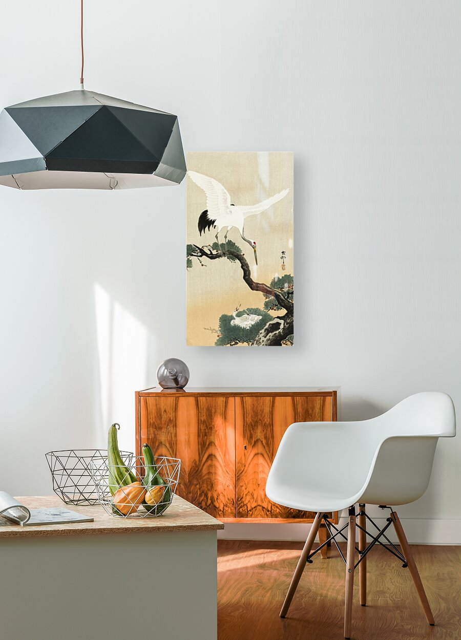Japanese crane bird on branch of pine 1900 - 1930 by Ohara Koson 1877-1945. Wood print